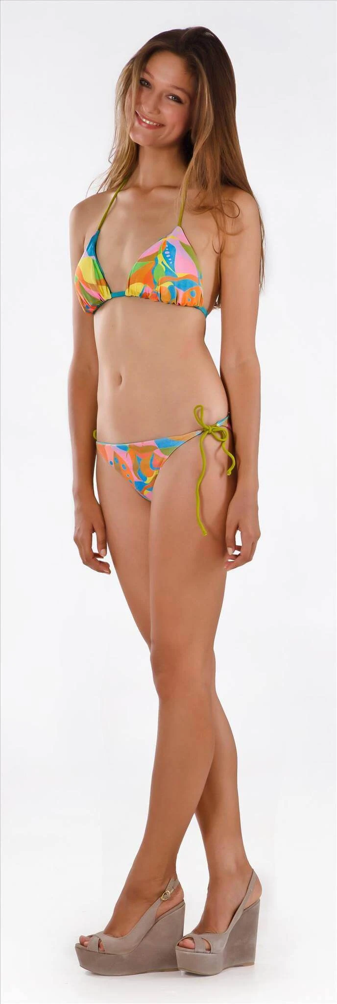 one size fits all, with adjustable sliding triangle top and side tie bottoms.